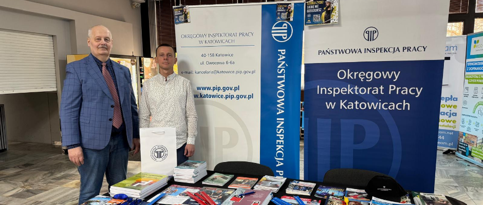 Na stoisku informacyjnym Okręgowego Inspektoratu Pracy uczestnicy konkursu oraz ich opiekunowie mogli uzyskać informacje dotyczące prawa pracy oraz zasad bezpiecznego wykonywania robót budowlanych. Przekazywano również informacje na temat działań prewencyjno-promocyjnych prowadzonych przez OIP w Katowicach, w tym szkoleń i konsultacji. Rozpowszechniano materiały edukacyjne Państwowej Inspekcji Pracy.