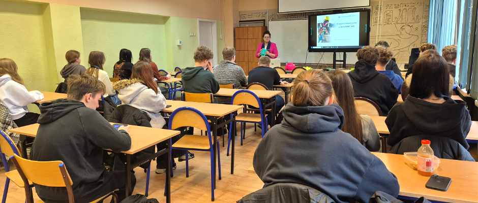 Szkolenie zostało poprowadzone przez Anettę Ranosz – nadinspektora pracy Okręgowego Inspektoratu Pracy w Katowicach i było skierowane do uczniów klas o profilu budowlanym, przygotowujących się do podjęcia pracy zawodowej.
