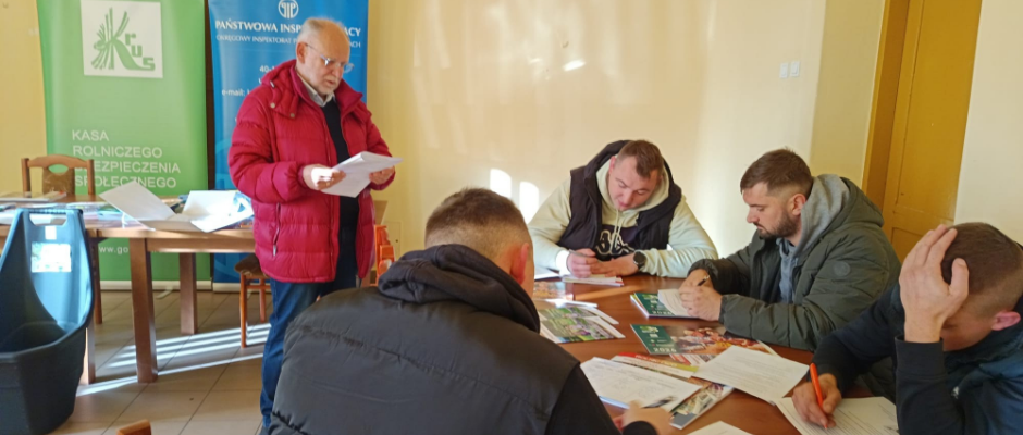 Podczas szkolenia inspektor pracy omówił kluczowe zagadnienia związane z ochroną zdrowia i życia podczas codziennych prac w gospodarstwie. Uczestnikom przypomniano najważniejsze obowiązki wynikające z przepisów BHP, a także wskazano praktyczne rozwiązania pomagające ograniczać ryzyko wypadków. Zwrócono uwagę m.in. na prawidłowe użytkowanie maszyn i narzędzi rolniczych, dobór odpowiednich środków ochrony indywidualnej oraz bezpieczne obchodzenie się z substancjami chemicznymi.