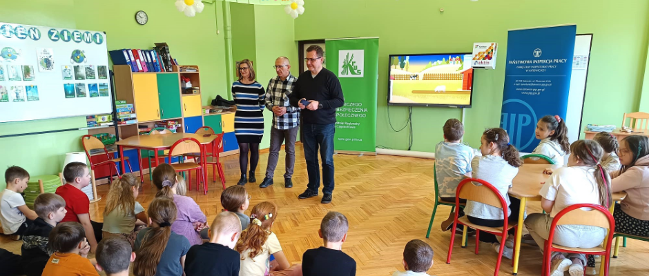 21 kwietnia 2026 r. w Szkole Podstawowej w Dzwono-Sierbowicach odbyło się szkolenie oraz konkurs dla dzieci klas I-III z zakresu bezpieczeństwa i higieny pracy w rolnictwie.