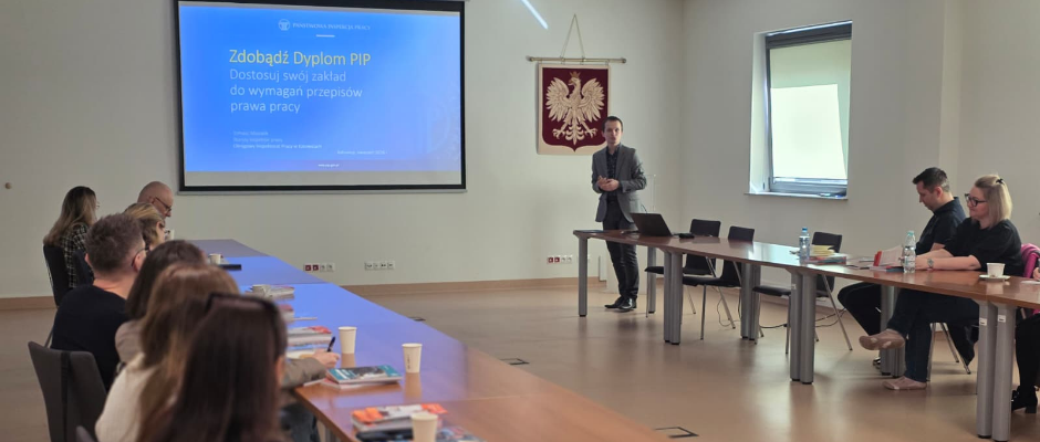 W dniu 23 kwietnia 2026 r. w siedzibie Okręgowego Inspektoratu Pracy w Katowicach odbyło się szkolenie zorganizowane w ramach programu prewencyjnego Państwowej Inspekcji Pracy „Zdobądź Dyplom PIP”. W wydarzeniu uczestniczyło 15 pracodawców prowadzących działalność gospodarczą m.in. w obszarze handlu, piekarnictwa, budownictwa, krótkoterminowego najmu, usług kosmetycznych i transportowych, a także działalności deweloperskiej, farmaceutycznej oraz samorządu gospodarczego.