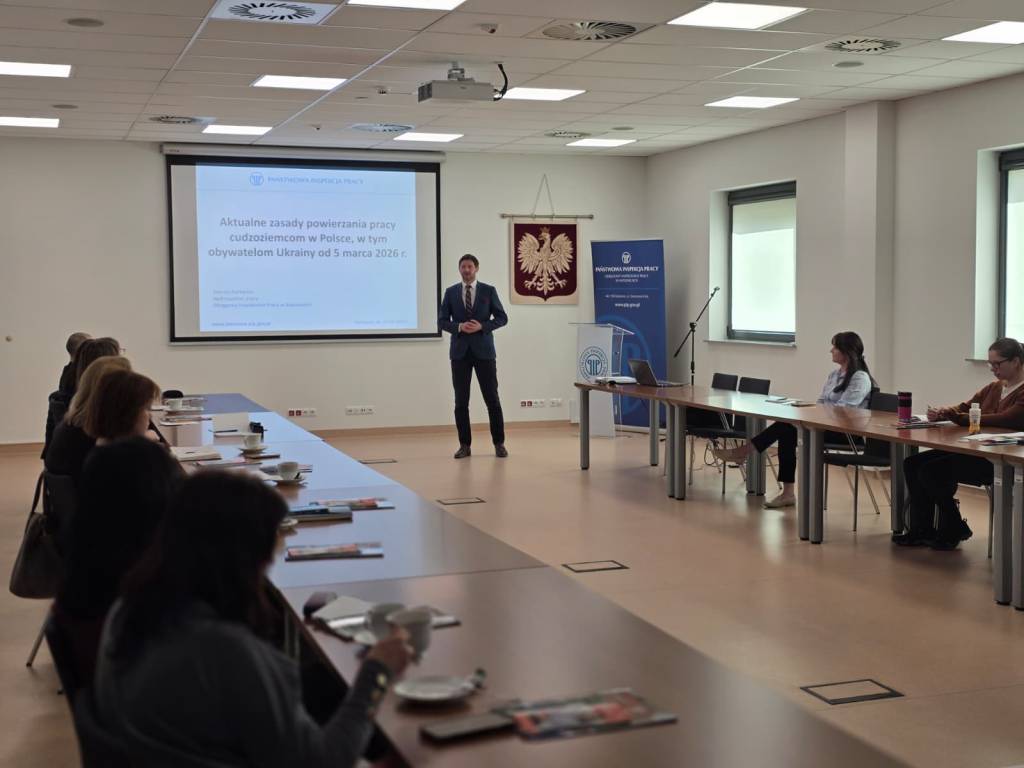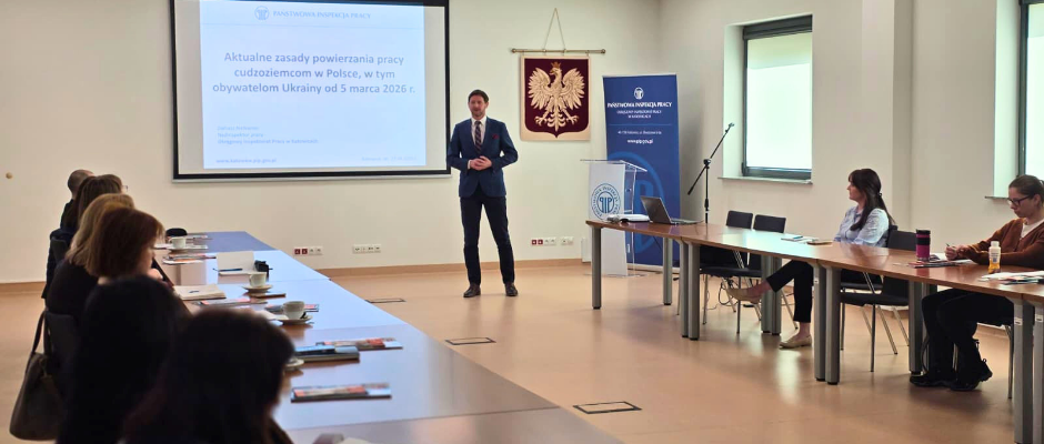 W dniu 27 kwietnia 2026 r. w siedzibie Okręgowego Inspektoratu Pracy w Katowicach odbyło się szkolenie skierowane do pracodawców oraz podmiotów powierzających wykonywanie pracy cudzoziemcom. Wydarzenie zostało zrealizowane w ramach programu promującego legalne i zgodne z obowiązującymi przepisami zatrudnianie cudzoziemców pn. „Cudzoziemcy w granicach prawa pracy”.