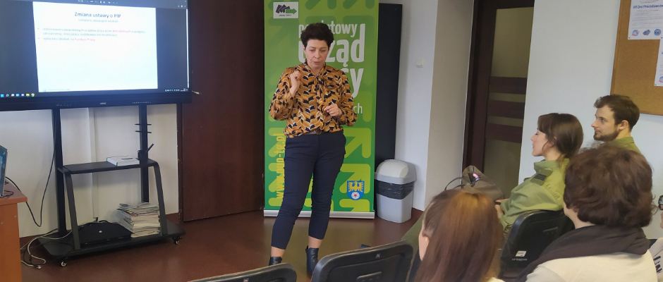 5 grudnia 2025 roku inspektorzy pracy z Okręgowego Inspektoratu Pracy w Katowicach – Małgorzata Lebida, starszy inspektor pracy – specjalista oraz Joanna Gawlik, młodszy inspektor pracy – wzięły udział w VII Dniu Otwartym Urzędu Pracy, zorganizowanym przez Powiatowy Urząd Pracy w Tarnowskich Górach. Wydarzenie skierowane było do lokalnych pracodawców oraz osób zainteresowanych zagadnieniami związanymi z legalnym zatrudnianiem pracowników, w szczególności cudzoziemców.