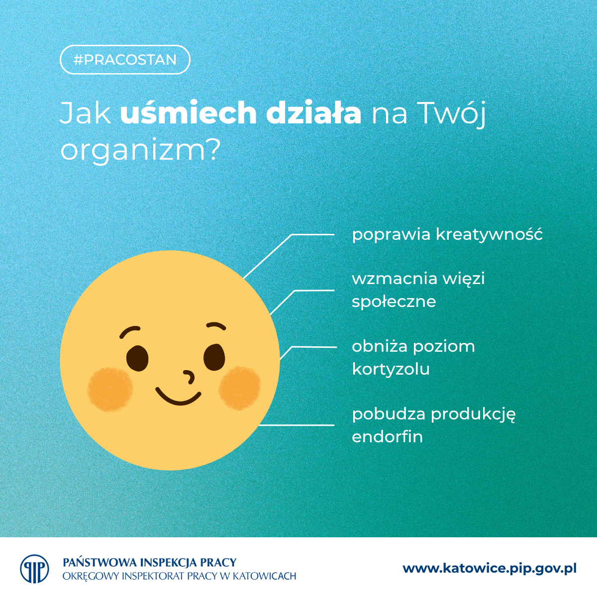 - Wzmacnia więzi społeczne – uśmiech jest zaraźliwy! Sprzyja budowaniu pozytywnej atmosfery w zespole i poczuciu przynależności.