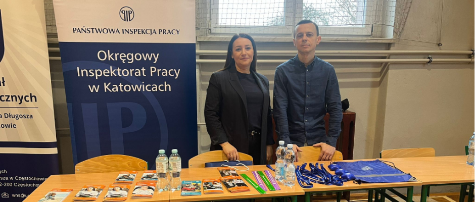 Na przygotowanym stoisku promocyjno-informacyjnym Okręgowego Inspektoratu Pracy w Katowicach młodzież oraz goście targów mogli uzyskać porady z zakresu prawa pracy, legalności zatrudnienia oraz BHP.