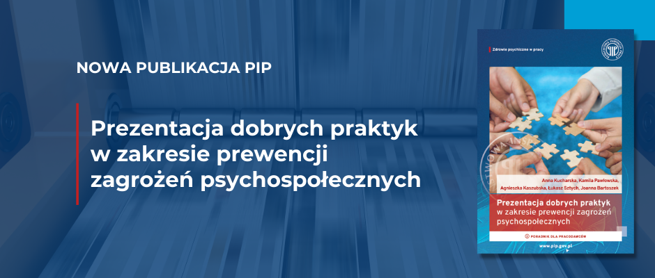 „Prezentacja dobrych praktyk w zakresie prewencji zagrożeń psychospołecznych. Poradnik dla pracodawców” to opracowanie prezentujące realne i sprawdzone rozwiązania wdrażane przez pracodawców z całej Polski. Publikacja pokazuje, jak w praktyce przeciwdziałać zagrożeniom psychospołecznym, takim jak stres zawodowy, wypalenie, mobbing, dyskryminacja czy konflikty w miejscu pracy.